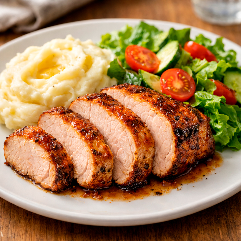 Lomo de cerdo al horno + puré + ensalada